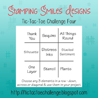 Hello Everyone! Tracie here with an inspirational post for challenge three of the Stamping Smiles Designs, Tic-Tac-Toe Challenge. It is a joy to see so many fabulous entries for Challenge Three.